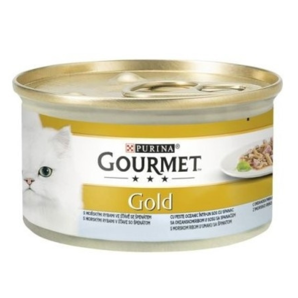 GOURMET Gold Konzerva za mačke s ribom i spanaćem u sosu