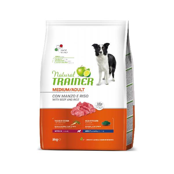 Trainer Natural Medium Adult sa govedinom i pirinčem je specijalno formulisan obrok koji zadovoljava specifične nutritivne potrebe odraslih pasa srednjih rasa (između 11kg i 30kg). Fokus ove recepture je na održavanju vitalnosti i idealne telesne mase uz korišćenje visokokvalitetnih, funkcionalnih sastojaka.
